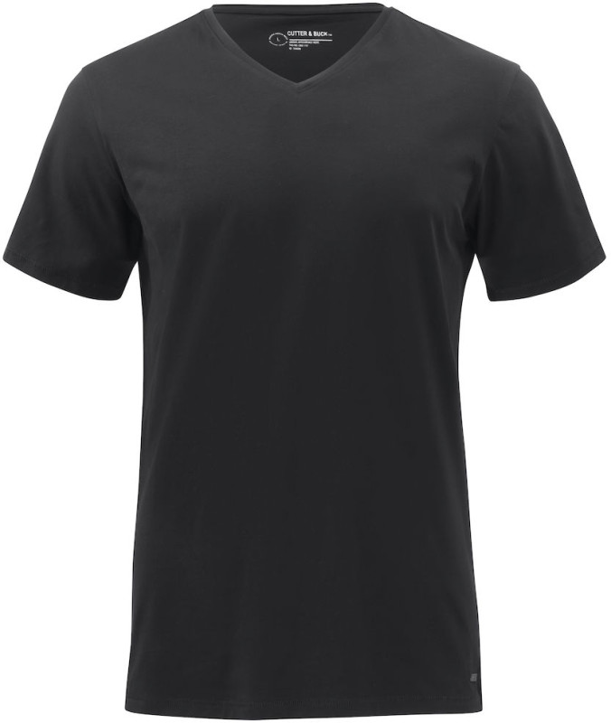 Klasyczny T-shirt z dekoltem typu V do codziennego użytku. Elastyczny, miękki materiał i nowoczesny krój, ozdobiony małą metalową metką w dolnym rogu koszulki.