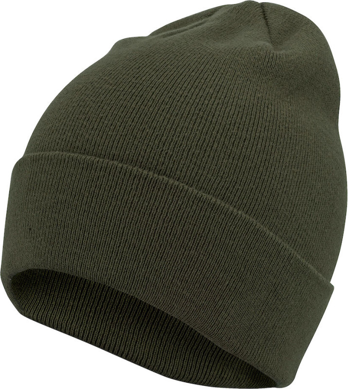 Dziergana czapka z zagięciem wykonana w całości z przetworzonej wtórnie bawełny.
