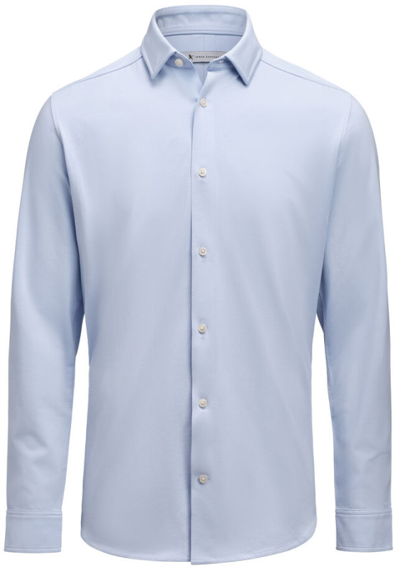 Koszula wykonana z lekkiego jerseyu z dodatkiem bawełny organicznej i elastanu świetnie się rozciąga, co zapewnia wyjątkowy komfort noszenia. Ukryty kołnierzyk typu button-down nadaje jej schludny i minimalistyczny wygląd. Noś ją do garnituru, by uzyskać elegancki zestaw, lub zestaw z jeansami czy chinosami, żeby uzyskać bardziej swobodny look. Dostępna w kroju Tailored Fit dla mężczyzn i Contemporary Fit dla kobiet.